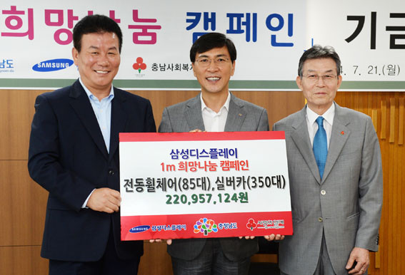 | | ¨Ï ¿Â¾ç½Å¹® | | »ï¼ºµð½ºÇ÷¹ÀÌ´Â 7¿ù 21ÀÏ Ãæ³²µµÃ»¿¡¼ ¿¸° ¡®1¹ÌÅÍ Èñ¸Á³ª´® Ä·ÆäÀÎ ±â±Ý Àü´Þ½Ä¡¯¿¡¼ Àüµ¿ÈÙü¾î 85´ë¿Í ½Ç¹öÄ« 350´ë¸¦ Ãæ³²µµ¿¡ Àü´ÞÇß´Ù.