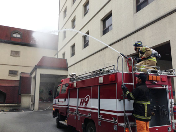 ¼Ò¹æ°ø¹«¿ø ¹× ¿Â¾ç°ü±¤È£ÅÚ Á÷¿ø ÀÚÀ§¼Ò¹æ´ë¿ø 50¿©¸íÀÌ Âü¿©ÇÑ °¡¿îµ¥ ¿Â¾ç°ü±¤È£ÅÚ ÁõÃൿ 3Ãþ °´½Ç¿¡¼ ÈÀç°¡ ¹ß»ýÇÏ¿© 2, 5Ãþ ¹× ½Å°üµ¿À¸·Î È®´ëµÇ°í ÀÖ´Â »óȲÀ¸·Î ¼³Á¤ÇØ ÀÚÀ§ ¼Ò¹æ´ëÀÇ ÃʱâÁø¾Ðż¼ ±¸Ãà ¹× ÇöÀå ÀûÀÀ·Â ÇÔ¾çÀ» ¸ñÇ¥·Î ½Ç½ÃµÆ´Ù.