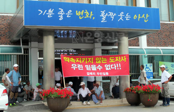 Áö³ 14ÀÏ ¿ÀÀü 10½Ã ¾Æ»ê½ÃÀÇȸ ÀÇÀå½Ç¿¡¼ À̱âö µµÀÇ¿øÀÌ ±ä±Þ±âÀÚȸ°ßÀ» ÅëÇØ ¡®Áö±¸ÁöÁ¤ ÇØÁ¦½Ã ¸ðµç ¼ö´ÜÀ» µ¿¿øÇØ ÅõÀïÇϰڴ١¯¸ç »ç¾÷ ÃßÁøÀ» Ã˱¸ÇÑ °Í¿¡ ¹ÝÇØ, 22ÀÏ ÀÎÁÖ¸é»ç¹«¼Ò ¾Õ¿¡¼´Â »ç¾÷ ÃßÁøÀ» ¹Ý´ëÇÏ´Â ÁֹεéÀÇ ³ó¼ºÀÌ ¹ú¾îÁ³´Ù.