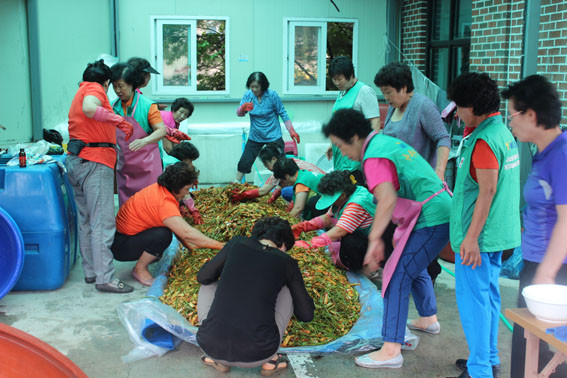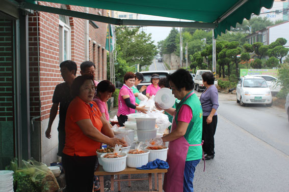 ¡®»ç¶ûÀÇ ¹ÝÂù³ª´©±â¡¯Çà»ç´Â ¹æÇбⰣ 3ÁÖ µ¿¾È ¸ÅÁÖ ¸ñ¿äÀÏ ¾Æ»ê½Ã»õ¸¶À»È¸°ü¿¡¼ ½Ç½ÃÇÑ´Ù. À̳¯ Çà»ç¿¡´Â 17°³ À¾¡¤¸é¡¤µ¿ ºÎ³àȸÀåµé°ú ÇùÀÇȸÀåµéÀÌ Âü¼®ÇØ ¿ÀÀ̱èÄ¡¸¦ ´ã°¡ÁÖ°í, ¹«´õ¿î ¿©¸§³¯ °Ç°À» À§ÇØ ´ß ÇÑ ¸¶¸®¾¿ Àü´ÞÇß´Ù.