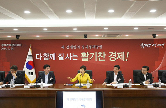 ¹Ú ´ëÅë·ÉÀº ¡°ÃÖ±Ù ¼¼¿ùÈ£ »ç°í ÀÌÈÄ °æÁ¦ ¼ºÀå ȸº¹¼¼°¡ ÁÖÃãÇϰí ÀÖ´Ù¡±¸ç, ¿À´Ã ȸÀǸ¦ ±âÁ¡À¸·Î ¿ì¸® °æÁ¦°¡ Àçµµ¾àÇÒ ¼ö ÀÖµµ·Ï °æÁ¦ Á¤Ã¥¿¡ °üÇØ ¼¼ °¡Áö ´çºÎÀÇ ¸»À» ÀüÇß´Ù.