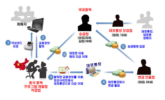 ¶ÇÇÑ, ÇÇÀÇÀÚ ¼Û Ù»(33¼¼) µî ±¹³» Çö±Ý ÀÎÃâÆÀµéÀº À§¿Í °°ÀÌ °¡·Îæ ÇÇÇØÀÚµéÀÇ ±Ý¿øÀ» ±¹³» ¿©·¯ °÷ÀÇ ±ÝÀ¶±â°ü ATM±â¿¡¼ Çö±ÝÀ¸·Î Ãâ±ÝÇϰí, À̸¦ ´Ù½Ã Áß±¹ÀÎ °èÁ·Π¼Û±ÝÇØ À̵æ±ÝÀ» ºÐ¹èÇÑ °ÍÀ¸·Î ¹àÇôÁ³´Ù.