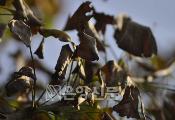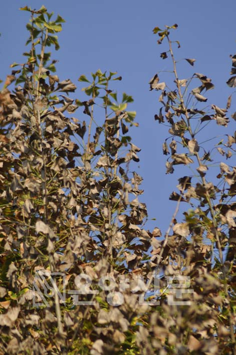 ±×·¯³ª ÀÌ·¯ÇÑ ÀºÇ೪¹« °¡·Î¼ö°¡ ¿±·Ï¼Ò ºÎÁ·À¸·Î ÀÎÇØ ÀÙÀÌ ´ÜdzÀ¸·Î º¯Çϱ⵵ Àü¿¡ ½Ãµé¾îÁ® ¶³¾îÁö´Â À̸¥¹Ù ȲÈÇö»óÀ» º¸À̰í ÀÖ´Ù. ÀºÇ೪¹«´Â Çê¹°°ü¸¸ ÀÖ´Â °Ñ¾¾½Ä¹°ÀÇ Æ¯¼º»ó ¹°À» õõÈ÷ »¡¾Æ µé¿© Áö³ÇØ ½ÉÇÑ º½°¡¹³À¸·Î ¹°À» ¼·ÃëÇÏÁö ¸øÇØ ÀÏ¾î³ Çö»óÀÎ °ÍÀ¸·Î ÃßÃøÇϰí ÀÖ´Ù.