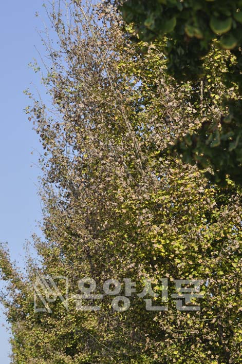 °í¿î °¡À»´ÜdzÀ¸·Î ¾Æ¸§´Ù¿î °Å¸®¸¦ Á¶¼ºÇÏ´Â ÀºÇ೪¹«°¡ ½É°¢ÇÑ º´À» ¾Î°í ÀÖÀ¸³ª ½ÇÅ ÆÄ¾ÇÁ¶Â÷ ¾î·Á¿ö ½Ã¸ñÀÎ ÀºÇ೪¹« °ü¸®ÀÇ ÇêÁ¡À» º¸À̰í ÀÖ´Ù.