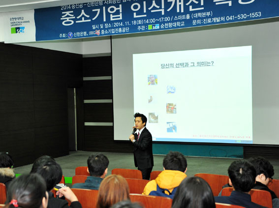 ¼øÃµÇâ´ëÇб³(ÃÑÀå ¼±³ÀÏ)´Â Áö³ 11¿ù 18ÀÏ ¿ÀÈÄ ÀçÇлýÀ» ´ë»óÀ¸·Î Ãë¾÷·ü Çâ»óÀ» À§ÇÑ ¡®Áß¼Ò±â¾÷ Àνݳ¼±¡¯ ÀÌ»ö Ư°À» ÁøÇàÇß´Ù.