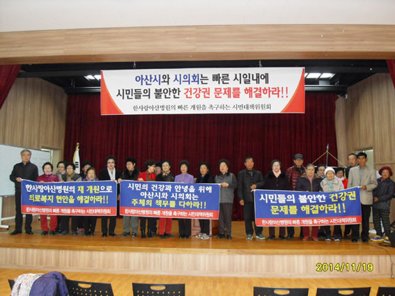 ½Ã¹Î´ëÃ¥À§´Â ¡°ÇÑ»ç¶û¾Æ»êº´¿øÀº ¾Æ»ê½Ã¹ÎÀÇ ¸ñ¼û°ú ÀÀ±ÞȯÀÚ¸¦ µ¹º¸´Â À¯ÀÏÇÑ Á¾ÇÕº´¿øÀε¥µµ °ü°è±â°üÀÌ ÀÌÇØ´ç»çÀÚµéÀÇ º´¿ø Á¡À¯¸¦ ¹æ°üÇØ ³»³â 3¿ù °³¿øÀÌ ºÒÅõ¸íÇÑ »óȲ¿¡ ³õ¿©ÀÖ´Ù¡±¸ç ¡°ÀÌ¿¡ ¾Æ»ê½Ã¹ÎµéÀº ¾Æ»ê½Ã¹ÎÀÇ °Ç°±ÇÀ» Ã¥ÀÓÁö°í ÀÖ´Â ÇÑ»ç¶û¾Æ»êº´¿øÀ» ÇÏ·ç »¡¸® ¾Æ»ê½Ã¹ÎÀÇ Ç°À¸·Î µ¹·ÁÁÙ °ÍÀ» °£°îÈ÷ û¿øÇÏ¸ç ´ëÇѹα¹Àº ¹ýÄ¡±¹°¡À̹ǷΠ¸¸¾à ÀÌÇØ °ü°è°¡ ÀÖ´Ù¸é º´¿ø ¹Û¿¡¼ ¹ýÀ¸·Î ÇØ°áÇÏ°í º´¿øÀº ÇÏ·ç »¡¸® °³¿øµÅ¾ß ÇÑ´Ù¡±°í Ã˱¸Çß´Ù.