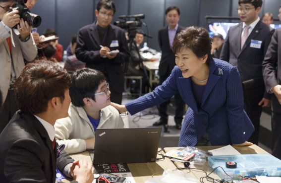 | | ¨Ï ¿Â¾ç½Å¹® | | ¹Ú±ÙÇý ´ëÅë·ÉÀº Áö³ 11¿ù 27ÀÏ ¿ÀÀü, ¡®Ã¢Á¶°æÁ¦, ´ç½ÅÀÌ ÁÖÀΰøÀÔ´Ï´Ù¡¯¶ó´Â ½½·Î°Ç ¾Æ·¡ °³ÃֵǴ ¡®2014 âÁ¶°æÁ¦¹Ú¶÷ȸ(CREATIVE KOREA 2014)¡¯¿¡ Âü¼®Çß´Ù.