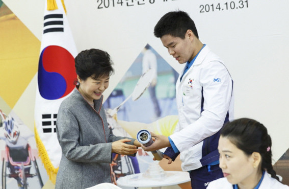 | | ¨Ï ¿Â¾ç½Å¹® | | ¹Ú±ÙÇý ´ëÅë·ÉÀº Áö³ 10¿ù 31ÀÏ, û¿Í´ë ¿¬¹«°ü¿¡¼ 2014ÀÎõÀå¾ÖÀξƽþưæ±â´ëȸ¿¡ Âü°¡Çß´ø ¼±¼ö´Ü ¹× °ü°èÀÚµéÀ» ÃÊûÇÏ¿© ¿ÀÂùÀ» ÇÔ²² ÇÏ¸é¼ ³ë°í¸¦ °Ý·ÁÇß´Ù.