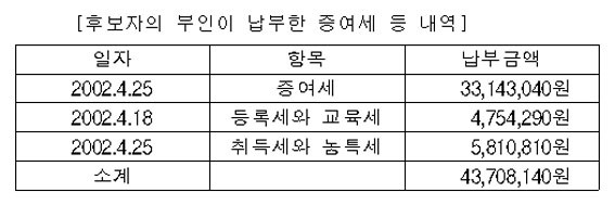 ÇÏÁö¸¸ ÀϺΠ¾ð·Ð¿¡¼ Èĺ¸ÀÚÀÇ ÀåÀÎÀÌ Â÷³²¿¡°Ô Á÷Á¢ Áõ¿©ÇÏÁö ¾ÊÀº °ÍÀÌ ¡®¼¼±ÝÀ» ÁÙÀ̱â À§ÇÑ Æí¹ý Áõ¿©¡¯¶ó´Â ÀÇȤÀ» Á¦±âÇϰí ÀÖ¾î, ÀÌ·¯ÇÑ º¸µµ´Â »ç½Ç°ú ´Ù¸£´Ù´Â Á¡À» °Á¶ÇØ ¹àÇû´Ù.