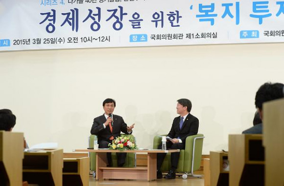 ÇÑÆí À̳¯ Á´ãȸ´Â ¾Èö¼ö ÀÇ¿ø µîÀÌ ¡®´Ù°¡¿Ã 40³â Àå±â ºÒȲ, ¾Èö¼öÀÇ Çѱ¹°æÁ¦ ÇØ¹ý ã±â¡¯ ³× ¹øÂ° ½Ã¸®Áî·Î ¸¶·ÃÇßÀ¸¸ç, È«¼®ºó ¹ÎÁÖÁ¤Ã¥¿¬±¸¿ø ºÎ¿øÀåÀÌ »çȸ¸¦ º¸´Â °¡¿îµ¥ ¾È Áö»ç¿Í ¾È ÀÇ¿øÀÌ ¡ã´ëÇѹα¹ º¹Áö ¼öÁØ ¡ãº¹Áö¿Í °æÁ¦¼ºÀåÀÇ ¼±¼øÈ¯ ¡ã°æÁ¦¼ºÀåÀ» ÅëÇÑ º¹Áö ÅõÀÚ µîÀ» ÁÖÁ¦·Î ÀǰßÀ» ³ª´©´Â ¹æ½ÄÀ¸·Î ÁøÇàµÆ´Ù.