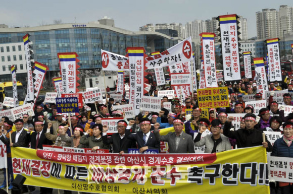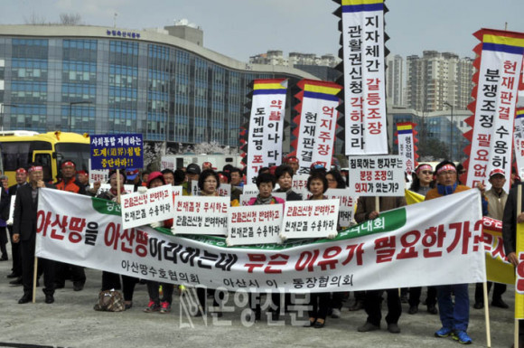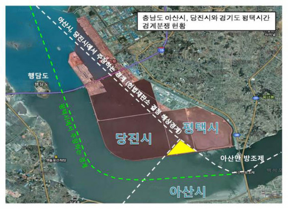 Á¤ºÎ´Â ¾Æ»ê¸¸ ÀÏ¿ø ¸Å¸³À» ÅëÇØ Á¶¼ºµÈ °æ°è¸¦ µÑ·¯½Î°í Ãæ³²µµ(¾Æ»ê½Ã, ´çÁø½Ã)¿Í °æ±âµµ(ÆòÅýÃ)»çÀÌ¿¡ ºÐÀïÀÌ ÁøÇà ÁßÀ¸·Î ¿À´Â 13ÀÏ ÃÖÁ¾°áÁ¤À» ¾ÕµÎ°í ÀÖ´Ù.