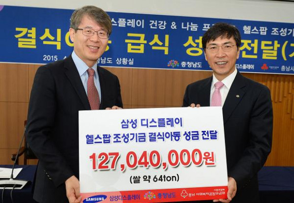 ÀÌ¿¡ ´ëÇØ ¹Úµ¿°Ç »ï¼ºµð½ºÇ÷¹ÀÌ »çÀåÀº ¡°ÀÓÁ÷¿øµéÀÇ °Ç°ÇÑ Á÷Àå»ýȰ ¸¸µé±â ÇÁ·ÎÁ§Æ®ÀÇ ÀÏȯÀ¸·Î »çȸ°øÇåȰµ¿À» Á¢¸ñÇÑ ÇコÆËÀ» ¿î¿µÇß´Ù¡±¶ó¸ç ¡°À̹ø ±Þ½Ä Áö¿øÀ» ½ÃÀÛÀ¸·Î ÇâÈÄ¿¡µµ ´Ù¾çÇÑ ÇÁ·Î±×·¥À» ÅëÇØ, Ãæ³²µµ¹Îµé°ú ÇÔ²² ÇÏ´Â Áö¿ª»ó»ý Ȱµ¿À» ÆîÃÄ ³ª°¡°Ú´Ù¡±°í È´äÇß´Ù.