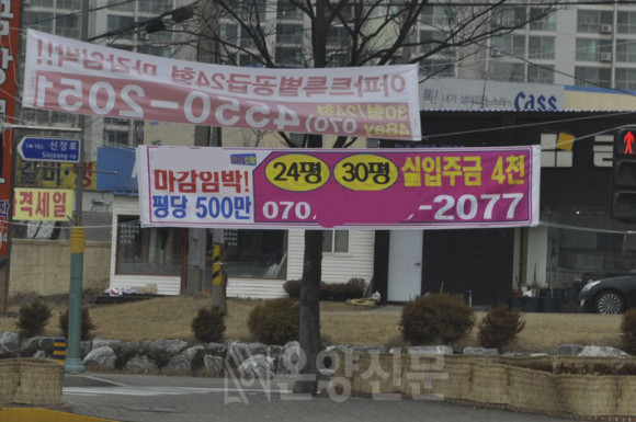 Áö³ 3¿ù ù°, µÑ° ÁÖ¸» ½Ã³»ÀÇ ÁÖ¿ä µµ·Îº¯¿¡´Â ½Åâ Áö¿ªÀÇ Æ¯Á¤ ¾ÆÆÄÆ®¸¦ È«º¸ÇÏ´Â Çö¼ö¸·ÀÌ ½Ã³» °÷°÷¿¡ ÁßøÀ¸·Î °Ô÷Çϰí ÀÖ´Ù. ¾î´À°÷Àº µµ¹è¸¦ ÇÏ´Ù½ÃÇÇ ³»°É¾î º¼½é»ç³³°Ô ¸¸µé°í, À̰°Àº ÇàÅ´ ÁÖ¸»¿¡ ´Ü¼ÓÀÌ ¾ø´Â °ÍÀ» ÀÌ¿ëÇØ ±Ý¿äÀÏ Àú³á¿¡ ÀǵµÀûÀ¸·Î °Ô÷ÇÑ °ÍÀ¸·Î ¿©°ÜÁö°í ÀÖ´Ù.