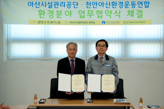 ¾Æ»ê½Ã½Ã¼³°ü¸®°ø´Ü(ÀÌ»çÀå ±è¿ì´Ð)°ú õ¾È¾Æ»êȯ°æ¿îµ¿¿¬ÇÕ(»óÀÓÀÇÀå ½Å¾ð¼®)Àº Áö³ 3¿ù 19ÀÏ °ø´Ü ȸÀǽǿ¡¼ ȯ°æº¸Àü ½ÇõÀÇ½Ä È®»ê°ú ±âÈĺ¯ÈÀÇ ½É°¢¼ºÀ» ÀÎ½Ä ½Ã۰í Áö±¸È¯°æº¸Àü°ú Áö¼Ó°¡´ÉÇÑ Çª¸¥ µµ½Ã°Ç¼³¿¡ À̹ÙÁöÇϱâ À§ÇØ È¯°æ¾÷¹« Çù¾à½ÄÀ» °¡Á³´Ù.