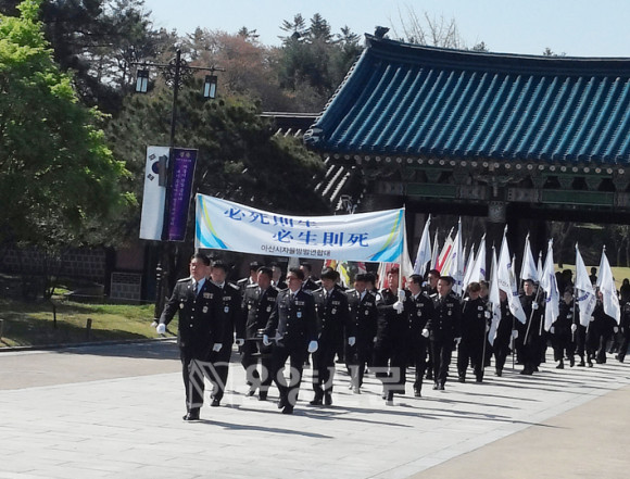 ¾Æ»ê½ÃÀÚÀ²¹æ¹ü¿¬ÇÕ´ë 19°³ Áö´ë°¡ Âü¿©ÇÑ Ä£¼ö½ÄÀº ¼º¿õ À̼ø½Å À屺ÀÇ ¾Ö±¹¾Ö¹Î Á¤½ÅÀ» °è½ÂÇØ ÀÚÀ²¹æ¹ü´ëÀÇ À§»óÀ» Á¤¸³Çϰí, µ¿»óÀ» ¿ÂÀüÈ÷ º¸Á¸ÇØ À屺ÀÇ ¼þ°íÇÑ Á¤½ÅÀ» Èļտ¡°Ô ¹°·ÁÁÖ°íÀÚ ÇÏ´Â ÃëÁö·Î °ÅÇàµÆ´Ù.