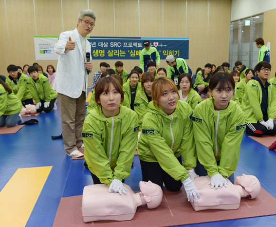 | | ¡è¡è ¡ãÁö³ 23ÀÏ ¿ÀÈÄ 4½Ã ¼øÃµÇâ´ë °ü±¤°æ¿µÇаú 1Çгâ Çлý 64¸íÀÌ ±â¼÷»ç³» ¿îµ¿½Ç¿¡¼ ¡®ÀÀ±Þóġ¿Í ½ÉÆó¼Ò»ý¼ú¡¯ ±³À° Áß ±èÀç¿ì(¿À¸¥ÂÊ) ±³¼ö°¡ ÇлýµéÀÇ ¹Ù¸¥ ÀÚ¼¼¸¦ ÁöµµÇϰí ÀÖ´Ù. | ¨Ï ¿Â¾ç½Å¹® | | À̹ø ±³À°Àº ½ÅÀÔ»ýµé¿¡°Ô ¾ÈÀüÀǽÄÀ» ³ôÀÌ°í °©ÀÛ½º·¯¿î ½ÉÀå Á¤Áö ½Ã ´ëü¿ä·ÉÀ» ½ÀµæÄÉÇÏ°í ±Ã±ØÀûÀ¸·Î´Â »ý¸íÁ¸ÁßÀǽÄÀ» È®»ê½Ã۱â À§ÇÑ ÀÏȯÀ¸·Î ¸¶·ÃµÆ´Ù°í ´ëÇаü°èÀÚ´Â ¼³¸íÇß´Ù.