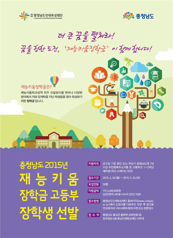 Ãæ³²ÀÎÀçÀ°¼ºÀç´Ü(ÀÌ»çÀå ¾ÈÈñÁ¤)Àº ´Ù¾çÇÑ Àç´ÉÀ» °¡Áø Ãæ³²Áö¿ªÀÇ °íµîÇлý, ´ëÇлýÀ» ¹ß±¼ÇØ Áö¿øÇÏ´Â ¡®Àç´ÉŰ¿òÀåÇбݡ¯ °íµîºÎ ÀåÇлýÀ» ¸ðÁýÇÑ´Ù°í ¹àÇû´Ù.