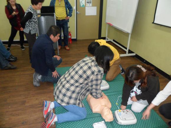 ÀÀ±Þ»óȲ ¹ß»ý½Ã¸¦ ´ëºñÇØ ¼¾ÅÍ¿¡ AED(ÀÚµ¿Á¦¼¼µ¿±â)¸¦ ±¸ÀÔÇÏ¿© ¼³Ä¡Çϰí ÀÀ±Þ»óȲ½Ã Á¦ÀÏ Áß¿äÇÑ ½ÉÆó¼Ò»ý¼ú ¹× AED »ç¿ë¹æ¹ý¿¡ ´ëÇÏ¿© ÀÌ·Ð ¹× ½Ç½ÀÀ» ÁøÇàÇß´Ù.