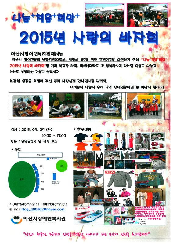 ¾Æ»ê½ÃÀå¾ÖÀκ¹Áö°ü(°üÀå ÀÌâȣ)Àº ¿À´Â 4¿ù 29ÀÏ ¿ÀÀü 10½ÃºÎÅÍ ¿ÀÈÄ 5½Ã±îÁö ¿Â¾ç¿Âõ¿ª ±¤Àå¿¡¼ Àú¼Òµæ Àå¾ÖÀÎ °¡Á¤ Áö¿øÀ» À§ÇÑ ¡®2015 ³ª´®¡¤Ã¤¿ò¡¤Èñ¸Á¡¤»ç¶ûÀÇ ¹ÙÀÚȸ¡¯¸¦ °³ÃÖÇÑ´Ù.