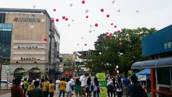 ƯÈ÷, ÀÌ ³¯ Çà»ç Áß ±Ý¿¬À» »ó¡ÇÏ´Â Èò»ödz¼±°ú »¡°Ç³¼± ¶ç¿ì±â¸¦ ÅëÇØ ¾Æ»ê½Ã¹ÎÀÇ ±Ý¿¬¿°¿ø°ú ¼Ò¸ÁÀ» ´ãÀº dz¼±ÀÌ ÇÏ´Ã ³ôÀÌ ¶°¿Ã¶ú´Ù.