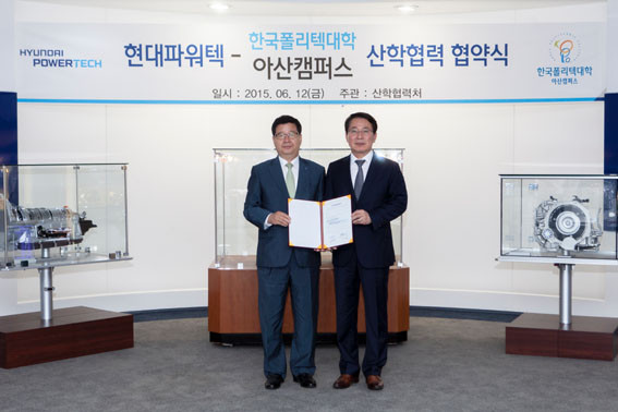 ÇÑÆí ±Û·Î¹ú °æÀï·ÂÀ¸·Î ¼¼°èÀÚµ¿Â÷»ê¾÷À» À̲ø°í ÀÖ´Â Çö´ëÆÄ¿öÅØ(ÁÖ)ÀÇ Á¤Àϼö ´ëÇ¥ÀÌ»ç´Â ¡°µÎ ±â°üÀÌ ¼·Î Çù·ÂÇÏ¿© Áö¿ª»ê¾÷¹ßÀü°ú ÇÔ²² ÀÏÀÚ¸®Ã¢Ãâ¿¡ Áö¼ÓÀûÀ¸·Î ³ë·ÂÇÏÀÚ¡±°í ¸»Çß°í, Çѱ¹Æú¸®ÅØ´ëÇÐ ¾Æ»êÄ·ÆÛ½º À±±â¼³ ÇÐÀåÀº ¡°À̹ø Çù¾àÀ» °è±â·Î ±â¾÷¿¡¼ ²À ÇÊ¿ä·Î ÇÏ´Â Àμº°ú ±â¼ú·ÂÀ» °âºñÇÑ ¿ì¼ö Àη ¾ç¼º¿¡ ÃÖ¼±À» ´ÙÇϰڴ١±°í ÀüÇß´Ù.