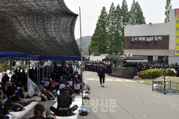 ÀÌ¿¡ µû¶ó Áö³ 4¿ù 23ÀÏ °í¿ë³ëµ¿ºÎ¿Í °æÂûÀº »ç¾÷Àå¿¡ ´ëÇÑ ¾Ð¼ö¼ö»öÀ» ½Ç½ÃÇÏ°í Æ¯º°±Ù·Î°¨µ¶À» ¹ú¿´´Ù. ±×·³¿¡µµ ºÒ±¸Çϰí 4¿ù 30ÀÏ¿¡´Â ´ë±Ô¸ð Æø·Â»çŰ¡ ¹ß»ýÇØ ±Ý¼Ó³ëÁ¶ °£ºÎµéÀÌ Å« ºÎ»óÀ» ÀÔ°í º´¿ø¿¡ ½Ç·Á°¡´Â µî ÇöÀå¿¡¼ Æø·ÂÀÌ Áö¼ÓµÈ °ÍÀ¸·Î ¾Ë·ÁÁ³´Ù.
