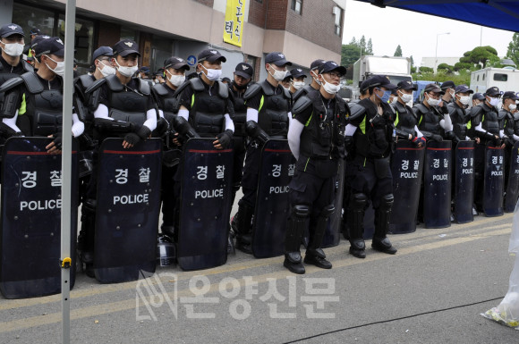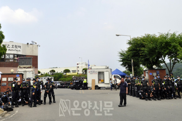ÀÌ¿¡ ´ëÇØ ¾Æ»ê½Ã¹Î¿¬´ë´Â ¡°Ãæ³²°æÂûûÀº Á¦2ºÎÀåÀ» º»ºÎÀåÀ¸·Î ÇÏ´Â ¼ö»çº»ºÎ¸¦ ¾Æ»ê°æÂû¼¿¡ ¼³Ä¡Çß´Ù°í ÇÑ´Ù. ±×·¯³ª 19ÀÏ ¿ÀÀü ÇöÀç, °æÂûÀº Æø·ÂÀ» Çà»çÇÑ ÀÚµéÀ» ¿¬ÇàÇÏÁö ¾Ê°í ±Ý¼Ó³ëÁ¶¿øµé°ú À̵éÀÇ Ãæµ¹À» ¸·´Â´Ù´Â ±¸½Ç·Î °æÂûº´·Â ¼ö¹é ¸íÀ» »óÁÖ½Ã۰í ÀÖÀ» »Ó¡±À̶ó°í ¹àÇû´Ù.