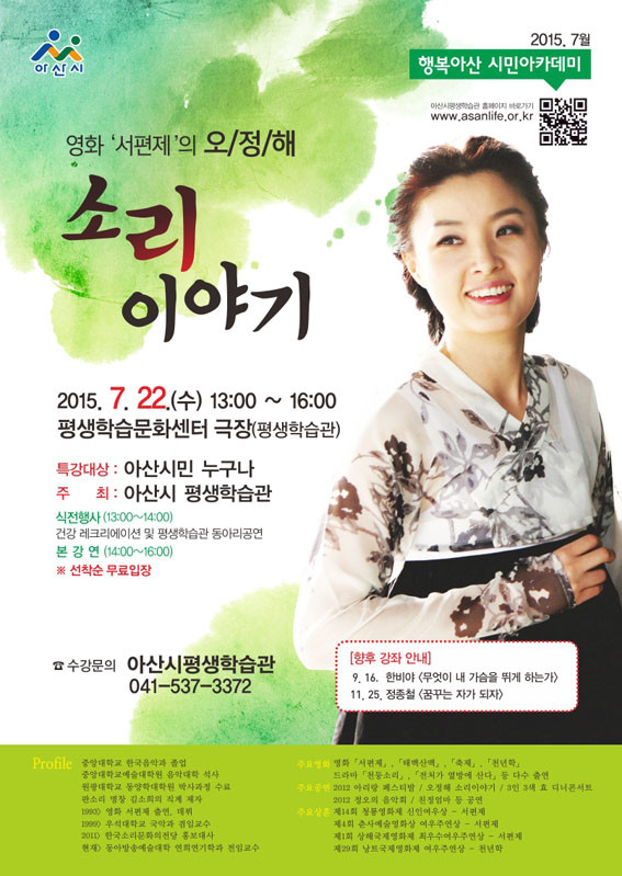 ¾Æ»ê½Ã Æò»ýÇнÀ¹®È¼¾ÅÍ(¼ÒÀå À¯±ÙºÀ)¿¡¼´Â ¿À´Â 7¿ù 22ÀÏ ¿ÀÈÄ1½Ã Æò»ýÇнÀ¹®È¼¾ÅÍ ±ØÀå¿¡¼ ¿µÈ¹è¿ìÀÌÀÚ ±¹¾ÇÀÎÀ¸·Î ³Î¸® ¾Ë·ÁÁ® ÀÖ´Â ¿ÀÁ¤Çؾ¾¸¦ ÃÊÃ»ÇØ ¡®¿ÀÁ¤ÇØÀÇ ¼Ò¸®À̾߱⡯¶ó´Â ÁÖÁ¦·Î ½Ã¹Î¾ÆÄ«µ¥¹Ì¸¦ °³ÃÖÇÑ´Ù.