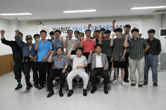 À̺´±¸ ÇаúÀå(»ê¾÷¼³ºñÀÚµ¿È°ú ±³¼ö)¿¡ ÀÇÇÏ¸é ¡°±â¼úÀ» ÀÍÇô ÀçÃë¾÷À» ÁغñÇÏ´Â ½ÇÁ÷ÀÚ »Ó¸¸ ¾Æ´Ï¶ó ¹è¿òÀÇ ½Ã°£ÀÌ ¾ø¾î ±â¼ú¿¬¸¶¸¦ ¹Ì·ç±â¸¸ Çß´ø ÀçÁ÷ÀÚ, ÀÚ¿µ¾÷ÀÚ ¸ðµÎ Çо÷ÀÇ ¿±â°¡ ´ë´ÜÇßÀ¸¸ç, ±× ¿©¼¼¸¦ ¸ô¾Æ ±³À°»ý 8¸íÀº »ê¾÷±â»ç À̷нÃÇè¿¡ ÇÕ°ÝÇß´Ù¡±°í ¹àÇû´Ù.