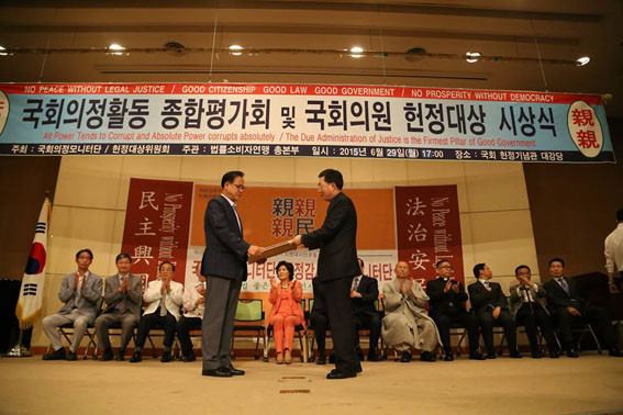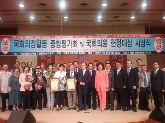 ±¹È¸ÀÇ¿ø ÇåÁ¤´ë»óÀº ±¹È¸ÀÇ¿øµéÀÇ Ãæ½ÇÇÑ ÀÇÁ¤È°µ¿À» À¯µµÇϰí, À¯±ÇÀÚ¿Í ½Ã¹Î´ÜüµéÀÇ °Ý·Á¿Í ½Å·Ú¸¦ °´°üÀûÀ¸·Î Àü´ÞÇÏ´Â ÀÇÁ¤È°µ¿À» Á¾ÇÕÆò°¡ÇØ ¼ö¿©ÇÏ´Â »óÀ¸·Î½á, À̸í¼ö ÀÇ¿øÀº Áö³ 2013³âµµ¿¡ À̾î 2015³â¿¡µµ ¼ö»óÇÏ´Â ¿µ±¤À» ¾È¾Ò´Ù.