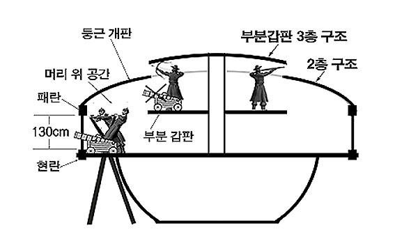 °ÅºÏ¼±ÀÇ Ãþ¼ö¿Í ³ôÀ̸¦ ÇØ¼®ÇÒ ¼ö ÀÖ´Â »ç·á´Â 1795³â °£ÇàµÈ ¡®ÀÌÃæ¹«°øÀü¼¡¯ÀÇ ±Ç¼öµµ¼³¿¡ ½Ç·Á ÀÖ´Â ÅëÁ¦¿µ¡¤Àü¶óÁ¼ö¿µ °ÅºÏ¼±ÀÇ ±×¸²°ú ¼³¸í¹®ÀÇ ±â·ÏÀ¸·Î ÅëÁ¦¿µ °ÅºÏ¼±ÀÇ ¡®Çö¶õ¡¯¿¡¼ ¡®ÆÐ¶õ¡¯±îÁöÀÇ ³ôÀ̰¡ 4.3ô(¾à 130cm)À̶ó´Â Ä¡¼öÀÇ ±â·ÏÀÌ ÀÖ°í, ÅëÁ¦¿µ °ÅºÏ¼±Àº À̼ø½Å À屺 °ÅºÏ¼±ÀÇ ¿¾ Á¦µµ¿¡ °¡±õ´Ù´Â ³»¿ëµµ ÀÖ¾î 4.3ôÀÇ ³ôÀÌ´Â ÀÓÁø¿Ö¶õ °ÅºÏ¼±ÀÇ ¿øÇüÀ» ã´Âµ¥ ¸Å¿ì Áß¿äÇÑ Ä¡¼ö°¡ µÈ´Ù.