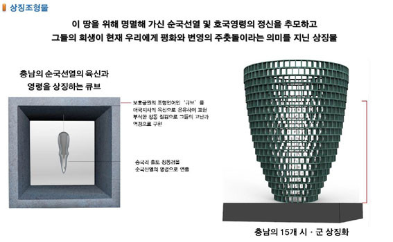 ÃæÈ¥Å¾Àº 1õ¿© °³ÀÇ Á¤»ç°¢Çü ºí·ÏÀ» ½×¾Æ 10m ³ôÀÌÀÇ °Å´ëÇÑ Åä±âÇüÅ·ΠÁ¦À۵Ǹç, °¢°¢ÀÇ ºí·Ï¿¡´Â ºÎ¿© ¼Û±¹¸®¿¡¼ ÃâÅäµÈ ûµ¿°Ë ÇüÅÂÀÇ Ç³°æÀ» ¸Å´Þ¾Æ ¾Ö±¹Á¤½ÅÀÇ ¿¬¼Ó¼ºÀ» Ç¥ÇöÇÑ´Ù.