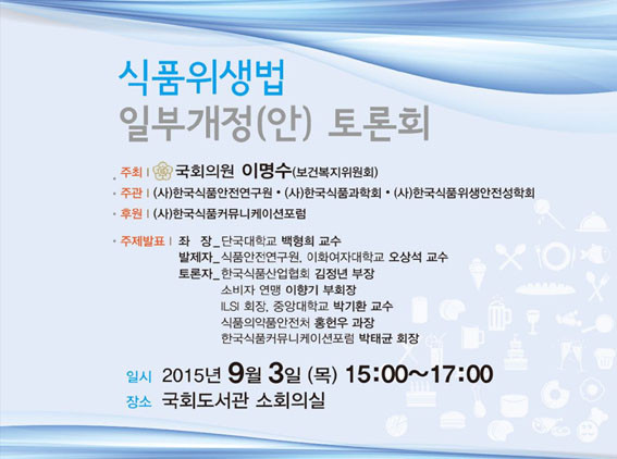 ÀÌ¿¡ À̸í¼ö ÀÇ¿øÀº ¡°¿À´Ã Åä·Ðȸ´Â ÇöÀç º» ÀÇ¿øÀÌ ´ëÇ¥¹ßÀÇÇÑ ¡®½ÄǰÀ§»ý¹ý¡¯ °³Á¤¾ÈÀ» Áß½ÉÀ¸·Î °³¼±µÇ¾î¾ß ÇÏ´Â ºÎºÐ¿¡ ´ëÇØ ´Ù¾çÇÑ ÀǰßÀ» ûÃëÇÏ¿©, ±¹¹Î°Ç°¿¡ ´ëÇÑ °ü½ÉÀ» Á¦°íÇϰíÀÚ ¸¶·ÃÇÏ¿´´Ù.¡±¸ç Åä·Ðȸ °³ÃÖ ÃëÁö¸¦ ¹àÇû´Ù.