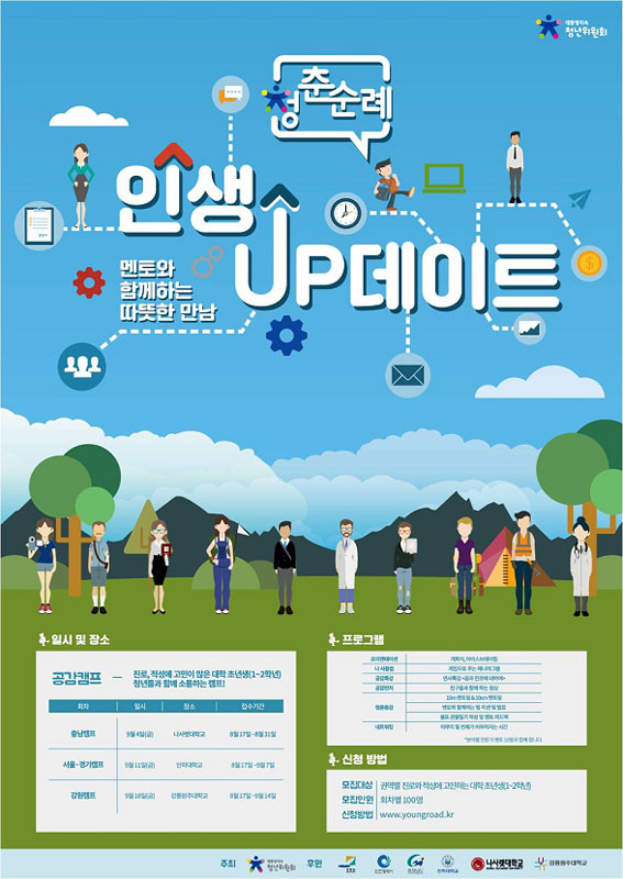 ´ëÅë·ÉÁ÷¼Ó û³âÀ§¿øÈ¸(À§¿øÀå ½Å¿ëÇÑ)¿Í ¿À´Â 9¿ù 4ÀÏ ³ª»ç·¿´ëÇб³(ÃÑÀå ½Å¹Î±Ô)¿¡¼ Ãæ³²Áö¿ª´ëÇп¬ÇÕÀ¸·Î ¡®2015³â ûÃá¼ø·Ê °ø°¨Ä·ÇÁ : Àλý UPµ¥ÀÌÆ® ¸àÅä¿ÍÀÇ µû¶æÇÑ ¸¸³²¡¯(ÀÌÇÏ Ã»Ãá¼ø·Ê)¸¦ °³ÃÖÇÑ´Ù.