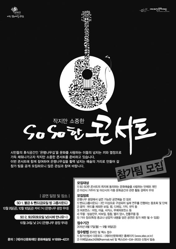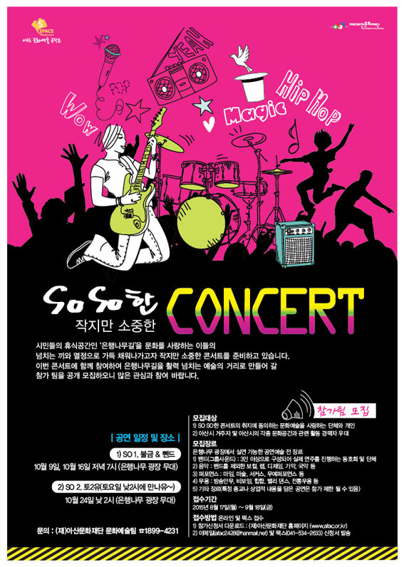 ¾Æ»ê½Ã°¡ ÁÖÃÖÇϰí (Àç)¾Æ»ê¹®ÈÀç´ÜÀÌ ÁÖ°üÇÏ´Â ¡®So SoÇÑ ÄܼƮ¡¯´Â ±âÁ¸ÀÇ ´ë±Ô¸ð °ø¿¬ ¹«´ë°¡ ¾Æ´Ñ Áö¿ª ¹®È¿¹¼úÀεéÀÌ Áß½ÉÀÌ µÅ ÁøÇàµÇ´Â ºñ·Ï ±Ô¸ð´Â ÀÛÁö¸¸ ´Ù¾çÇÑ À帣ÀÇ °ø¿¬À¸·Î ½Ã¹ÎµéÀÇ ´«À» Áñ°Ì°Ô Çϰí Èï°Ü¿òÀ» ¼±»çÇÒ °ÍÀÌ´Ù.