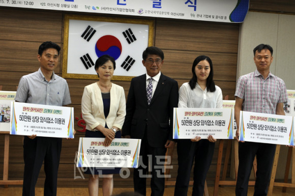 º¹±â¿Õ ½ÃÀåÀº ¡°½Ã´Â À̹ø Çà»ç¿¡ ÇÑ °ÍÀÌ ¾ø´Ù. ¾Æ»ê½Ã±â¾÷ÀÎÇùÀÇȸ¿Í ¿Ü½Ä¾÷ Áß¾Óȸ ¾Æ»ê½Ã ÁöºÎ¿¡¼ ÀÚ¹ßÀûÀ¸·Î °æÇ°À» ³»³õ¾Æ ¿¹»êÀ» µéÀÌÁö ¾Ê°í ½Ã¹ÎµéÀÌ Àü¿°º´À¸·ÎºÎÅÍ ÀÏ»óÀ¸·Î µ¹¾Æ°¡´Â ¸ð½ÀÀ» º¸ÀÌÀÚ´Â ÃëÁö·Î ¸¸µé¾îÁø Çà»ç¿´´Ù¡±¸ç ¾î·Á¿î »óȲÀÓ¿¡µµ ºÒ±¸ÇÏ°í °æÇ°À» ³»³õÀº ±â¾÷°ú »óÀÎ, ´ç÷µÈ ºÐµé¿¡°Ô ÃàÇÏÀλ縦 ÀüÇß´Ù.