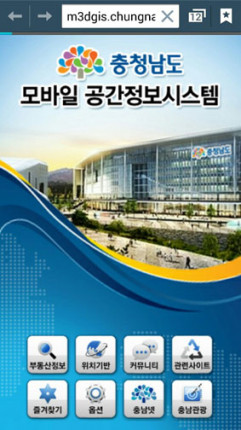 ¸ð¹ÙÀÏ °ø°£Á¤º¸½Ã½ºÅÛ(http://n3dgis.chungnam.net)Àº ¡®Ãæ³²µµ ¾Û¡¯¿¡¼ Àüü¸Þ´ºº¸±â-»ýȰ-°ø°£Á¤º¸¸¦ Ŭ¸¯ÇÏ¸é µÈ´Ù.
