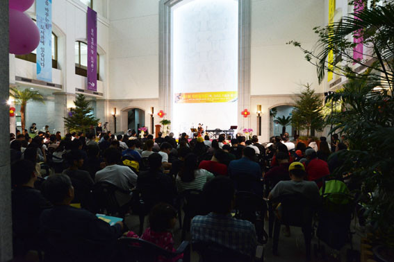 À̳¯ Àú³á 7½ÃºÎÅÍ ¾à 2½Ã°£ ¿¸° À½¾Çȸ¿¡´Â Çлý°ú Áö¿ªÁֹΠµî 300¿© ¸íÀÌ Âü¼®ÇØ °¨¹Ì·Î¿î ¼±À²¿¡ ÇູÇÑ ½Ã°£À» º¸³Â´Ù.