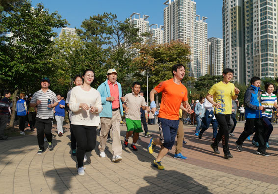 ¾Æ»ê¤ýõ¾È¤ý±âÈïÀÇ °¢ Ä·ÆÛ½º ÁÖÀ§¿¡ ¸¶·ÃµÈ 5km ´Þ¸®±â ÄÚ½º¸¦ ¿ÏÁÖÇÑ Âü°¡ÀÚµéÀº, ¼ÒÅ뱤Àå¿¡ ¸ð¿© ÀÓÁ÷¿ø ´ÜÇÕ ÇÁ·Î±×·¥¿¡ Âü¿©ÇÑ ÈÄ, ÀÓÁ÷¿ø°ú Áö¿ª ÃÊû °ø¿¬ÆÀÀ¸·Î ±¸¼ºµÈ Ȱ·ÂÄܼƮ¸¦ °ü¶÷Çß´Ù.