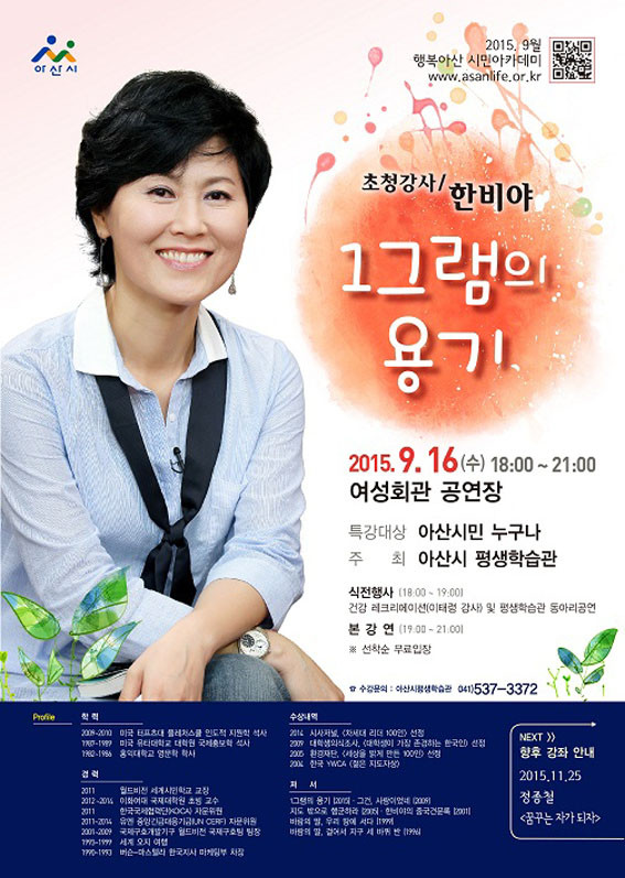 ¾Æ»ê½Ã Æò»ýÇнÀ¹®È¼¾ÅÍ(¼ÒÀå À̼º¿¬)´Â ¿À´Â 9¿ù 16ÀÏ ¿ÀÈÄ 7½Ã ¿©¼ºÈ¸°ü °ø¿¬Àå¿¡¼ ¡®¹Ù¶÷ÀÇ µþ¡¯·Î Ä£¼÷ÇÑ ÇѺñ¾ß °»ç¸¦ ÃÊÃ»ÇØ ¡®1±×·¥ÀÇ ¿ë±â¡¯¶ó´Â ÁÖÁ¦·Î ½Ã¹Î¾ÆÄ«µ¥¹Ì¸¦ °³ÃÖÇÑ´Ù°í ¹àÇû´Ù.