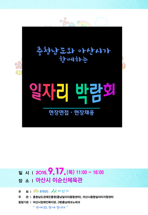Ãæ³²µµ´Â ¾Æ»ê½Ã¿Í °øµ¿À¸·Î ¿À´Â 9¿ù 17ÀÏ ¿ÀÀü 11½ÃºÎÅÍ ¿ÀÈÄ 4½Ã±îÁö ¾Æ»ê½Ã À̼ø½ÅüÀ°°ü¿¡¼ ¡®2015 ÀÏÀÚ¸® ¹Ú¶÷ȸ¡¯¸¦ °³ÃÖÇÑ´Ù.