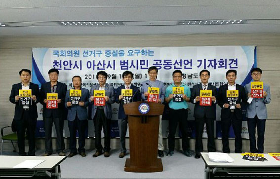 | | ¨Ï ¿Â¾ç½Å¹® | | ±¹È¸ÀÇ¿ø ¼±°Å±¸ Áõ¼³À» À§ÇÑ ¾Æ»ê½Ã ¹ü½Ã¹Î´ëÃ¥À§¿øÈ¸¿Í Çå¹ý¼öÈ£¸¦ À§ÇÑ Ãµ¾È½Ã ±¹È¸ÀÇ¿ø ¼±°Å±¸ Áõ¼³ ¹ü½Ã¹ÎÇùÀÇüÀÇ °øµ¿¼±¾ð ±âÀÚȸ°ßÀÌ 9¿ù 14ÀÏ ¿ÀÀü 11½Ã Ãæ³²µµÃ» ºê¸®Çνǿ¡¼ °³ÃֵƴÙ.
