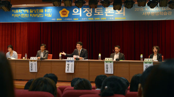 Ãæ³²µµÀÇȸ´Â 9¿ù 16ÀÏ µµ ¼ºÎÆò»ýÇнÀ°ü¿¡¼ ÀÚÀ¯ÇбâÁ¦ Ȱ¼ºÈ¸¦ À§ÇÑ Áö¿ª»çȸ ÇкθðÀÇ ¿ªÇÒÀ» ÁÖÁ¦·Î ÀÇÁ¤Åä·Ðȸ¸¦ °³ÃÖÇß´Ù.