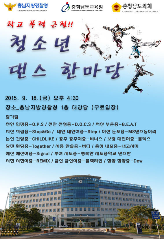 Ãæ³²°æÂûû(ûÀå ±è¾çÁ¦)Àº Ãæ³²±³À°Ã»(±³À°°¨ ±èÁöö)°ú °øµ¿À¸·Î 9¿ù 18ÀÏ ¿ÀÈÄ 4½Ã30ºÐºÎÅÍ 2½Ã°£ 30ºÐµ¿¾È Ãæ³²°æÂûû 1Ãþ ´ë°´ç¿¡¼ Çб³Æø·Â ¿¹¹æÀ» À§ÇÑ ¡®2015 û¼Ò³â ´í½ºÇѸ¶´ç¡¯ Çà»ç¸¦ °³ÃÖÇÑ´Ù°í ¹àÇû´Ù.