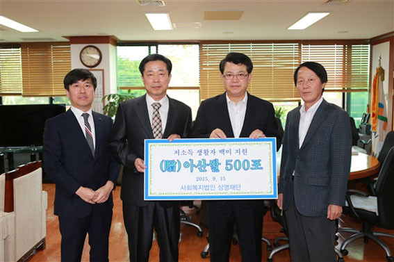 | | ¨Ï ¿Â¾ç½Å¹® | | »çȸº¹Áö¹ýÀÎ »ó¿µÀç´Ü(¡²ÁÖ¡³½Åµµ¸®ÄÚ ¾Æ»ê°øÀåÀå ±è¹®È¯)Àº Áö¿ª Àú¼ÒµæÃþÀÇ º¹ÁöÇâ»óÀ» À§ÇØ Áö³ 9¿ù 15ÀÏ ¾Æ»ê½Ã ÇູŰ¿òÁö¿ø´Ü¿¡ ÈÄ¿ø±Ý¡¤Ç°À» Àü´ÞÇß´Ù.