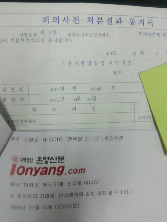 ° ¸ð Àü ¾Æ»ê½Ã ÇàÁ¤±¹ÀåÀÌ º»º¸¸¦ »ó´ë·Î ÃâÆÇ¹°¿¡ ÀÇÇÑ ¸í¿¹ÈÑ¼Õ ÇøÀÇ·Î °í¼Ò¸¦ Á¦±âÇßÀ¸³ª °ËÂûÀÌ ÇøÀÇ ¾øÀ½ óºÐÇß´Ù.