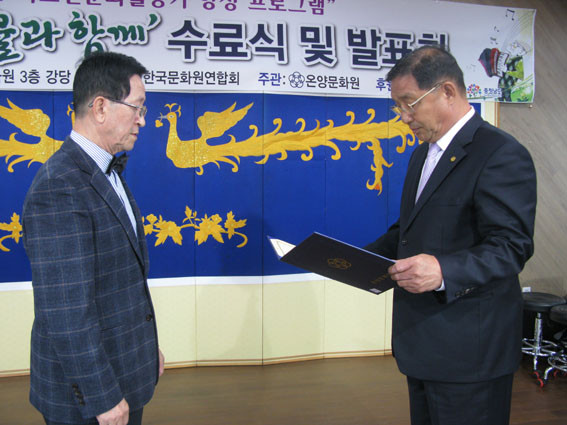 Çѱ¹¹®È¿ø¿¬ÇÕȸ°¡ ÁÖÃÖÇÏ°í ¹®ÈüÀ°°ü±¤ºÎ°¡ ÈÄ¿øÇÑ À̹ø ¼ö·á½Ä ¹× ¹ßǥȸ´Â 2015³â 3¿ùºÎÅÍ ½ÃÀÛÇÑ ¾î¸£½Å¹®ÈÇÁ·Î±×·¥ÀÇ ÀÏȯÀ¸·Î ¾ÆÄÚµð¾ð¹Ý(Áöµµ°»ç ¿ÀÀ±»ó) ¼ö°»ýµéÀÌ °¥°í ´ÛÀº ½Ç·ÂÀ» ¸¶À½²¯ »Ë³»´Â ÀÚ¸®·Î ¸¶·ÃµÆÀ¸¸ç, ÃʱÞ, Áß±Þ¹Ý ¼ö°»ýµé¿¡°Ô °¢ ¹Ýº° ¼ö·áÁõ Àü´Þ°ú ÇÔ²² 1³â µ¿¾ÈÀÇ ³ë·ÂÀÌ °á½ÇÀ» ¸Î´Â ÀÚ¸®°¡ µÇ±âµµ Çß´Ù.