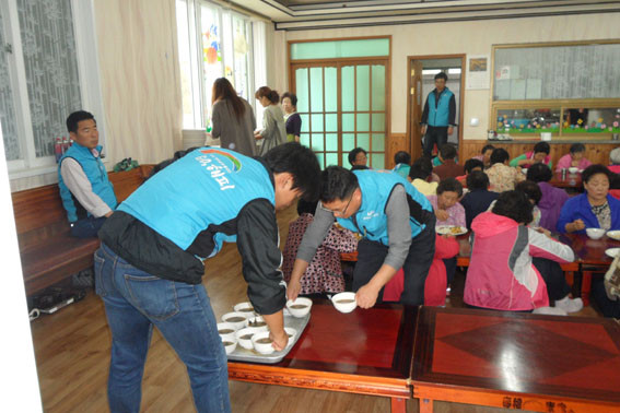 °ø»ç Á÷¿ø ¹× º¹Áö°ü Á÷¿ø µî 20¿©¸íÀº µ¶°Å³ëÀÎ ºÐµéÀ» À§ÇØ Á¤¼ºÀ» ´ÙÇØ À½½ÄÀç·á¸¦ ¼ÕÁúÇϰí À½½ÄÀ» ¸¸µé¾î ±Þ½Ä ºÀ»çȰµ¿À» Çß´Ù.