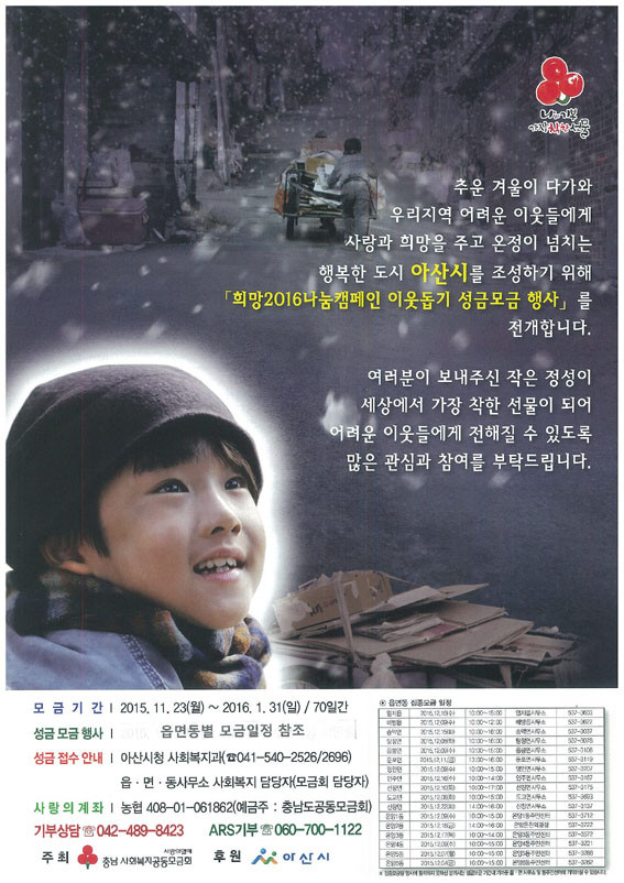 | | ¨Ï ¿Â¾ç½Å¹® | | ¾Æ»ê½Ã(½ÃÀå º¹±â¿Õ)´Â Ãæ³²»çȸº¹Áö°øµ¿¸ð±Ýȸ¿Í ÇÔ²² 11¿ù 23ÀϺÎÅÍ ³»³â 1¿ù 31ÀϱîÁö 70Àϰ£ ¡®Èñ¸Á2016 ³ª´®Ä·ÆäÀΡ¯ ¼º±Ý¸ð±ÝÀ» Àü°³ÇÑ´Ù°í ¹àÇû´Ù.
