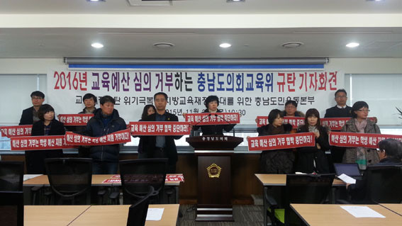 Ãæ³²µµ¹Î¿îµ¿º»ºÎ´Â À̳¯ ±âÀÚȸ°ß¿¡¼ ¡°(Ãæ³²µµÀÇȸÀÇ)±³À° ¿¹»ê ½ÉÀǰźδ ÇнÀȯ°æ ȲÆóÈÀÇ Áö¸§±æÀÌ´Ù. ´©¸®°úÁ¤¿¹»êÀ» Áö¹æÃ¤ ¹ßÇàÀ¸·Î ¹«¸¶ÇÏ·Á´Â ¾ßÇÕÀ» Áß´ÜÇ϶󡱰í Ã˱¸Çß´Ù.